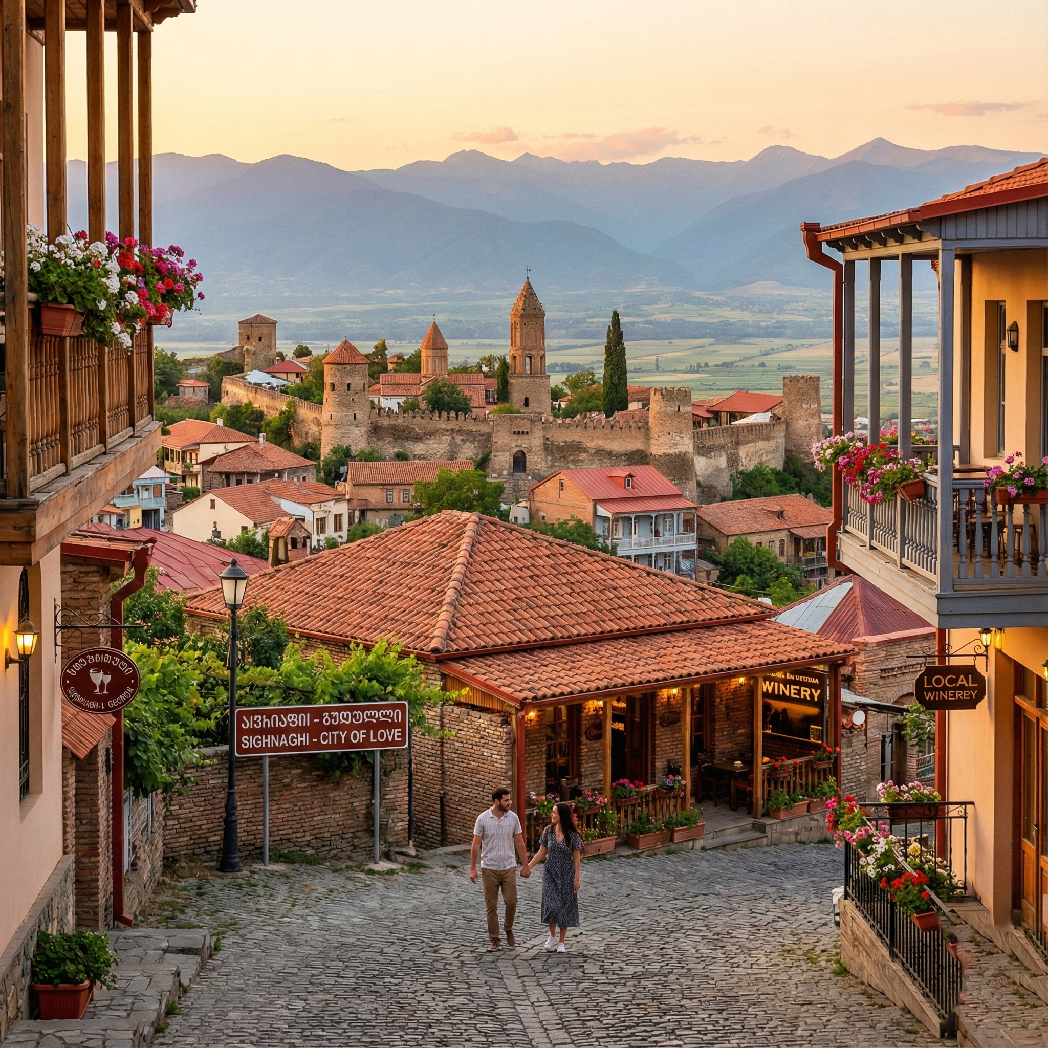 Wander through colorful streets and charming balconies in this romantic hilltop town offering sweeping views of the beautiful Alazani Valley.